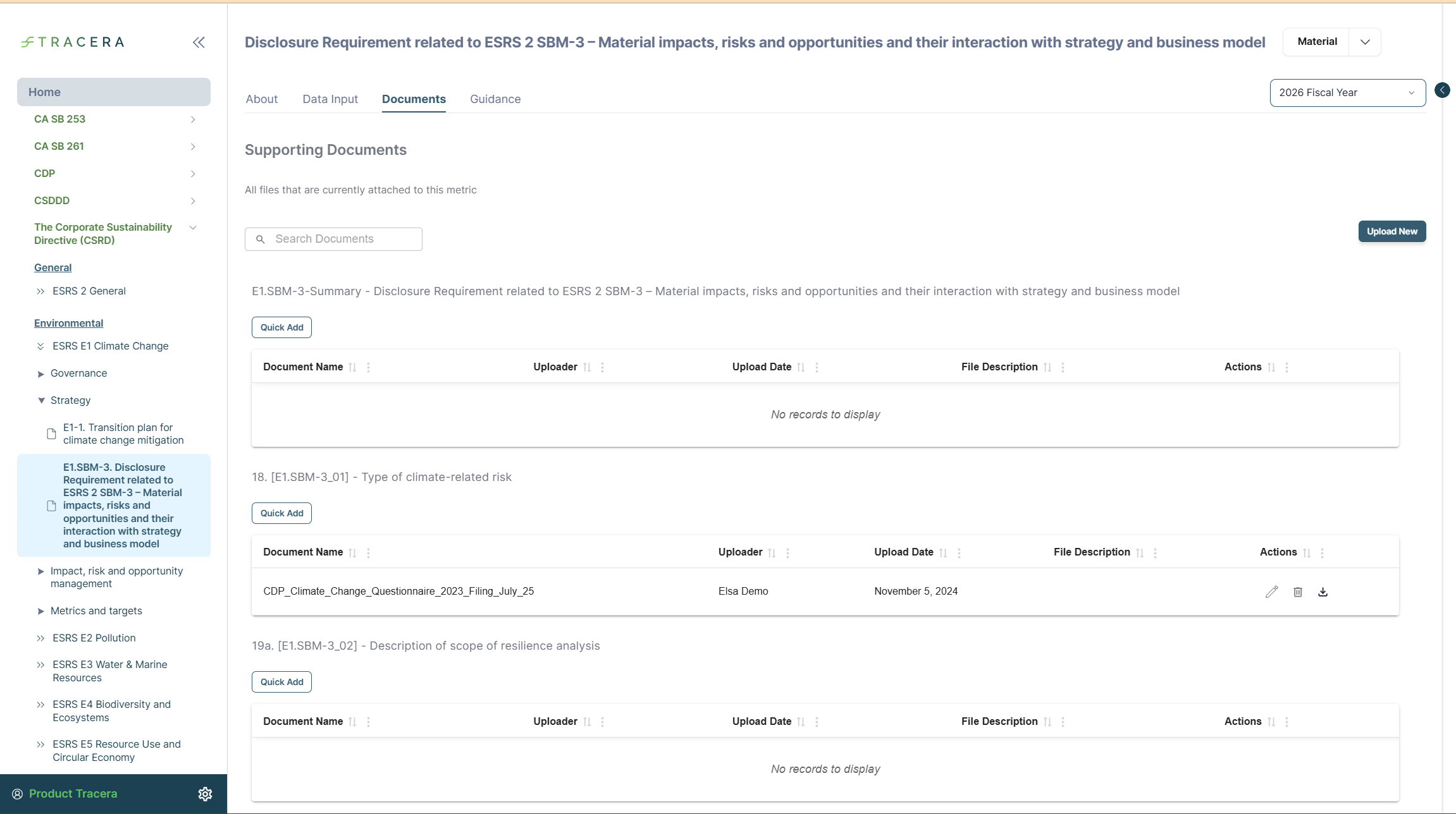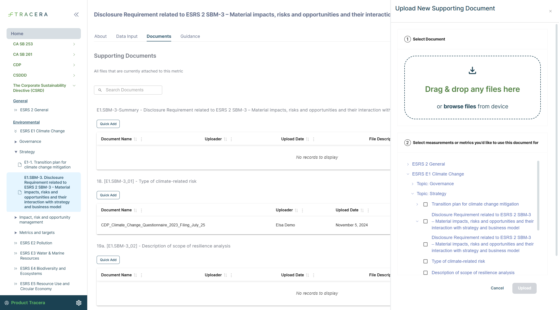 - Upload New – Upload documents and link them across multiple measurements or metrics