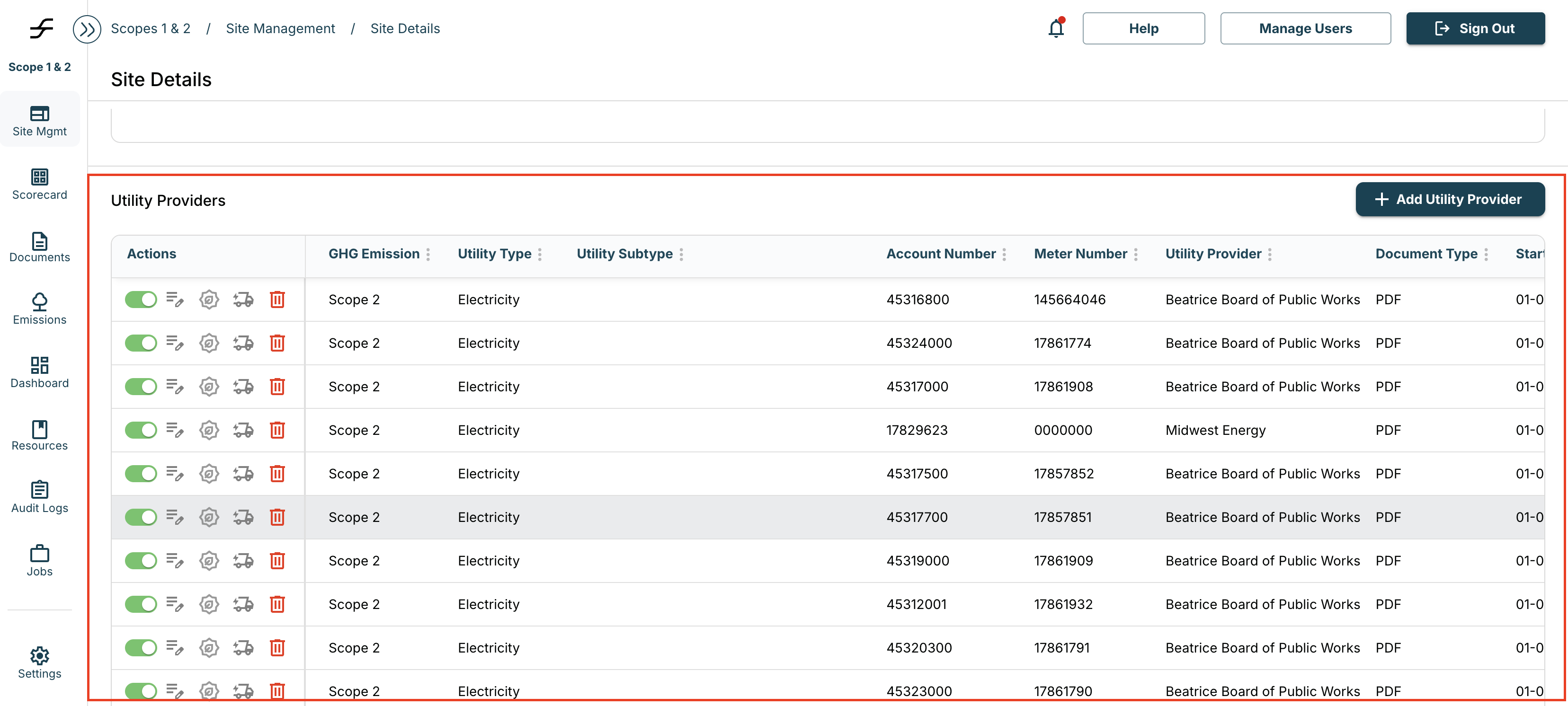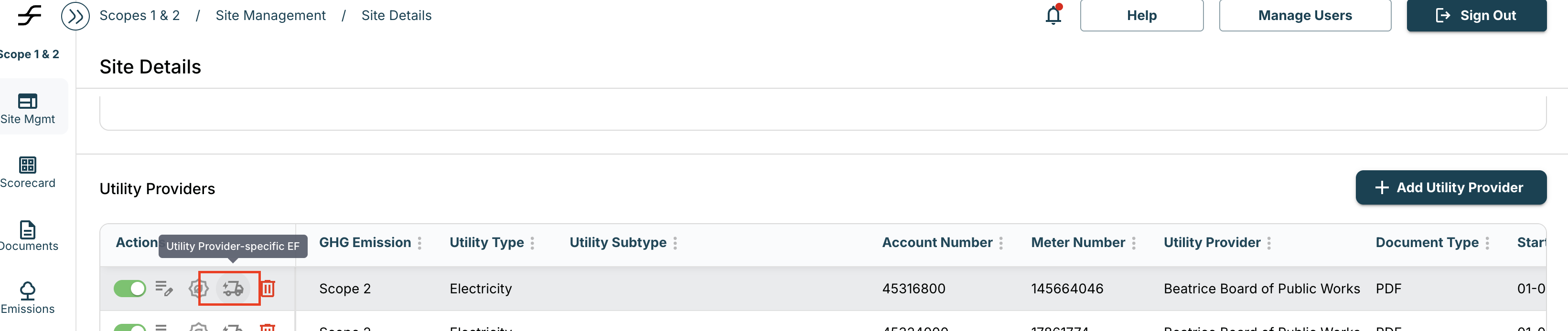 To improve the accuracy of market-based emissions calculations, you can add utility provider-specific emission factors for a given site and utility type.