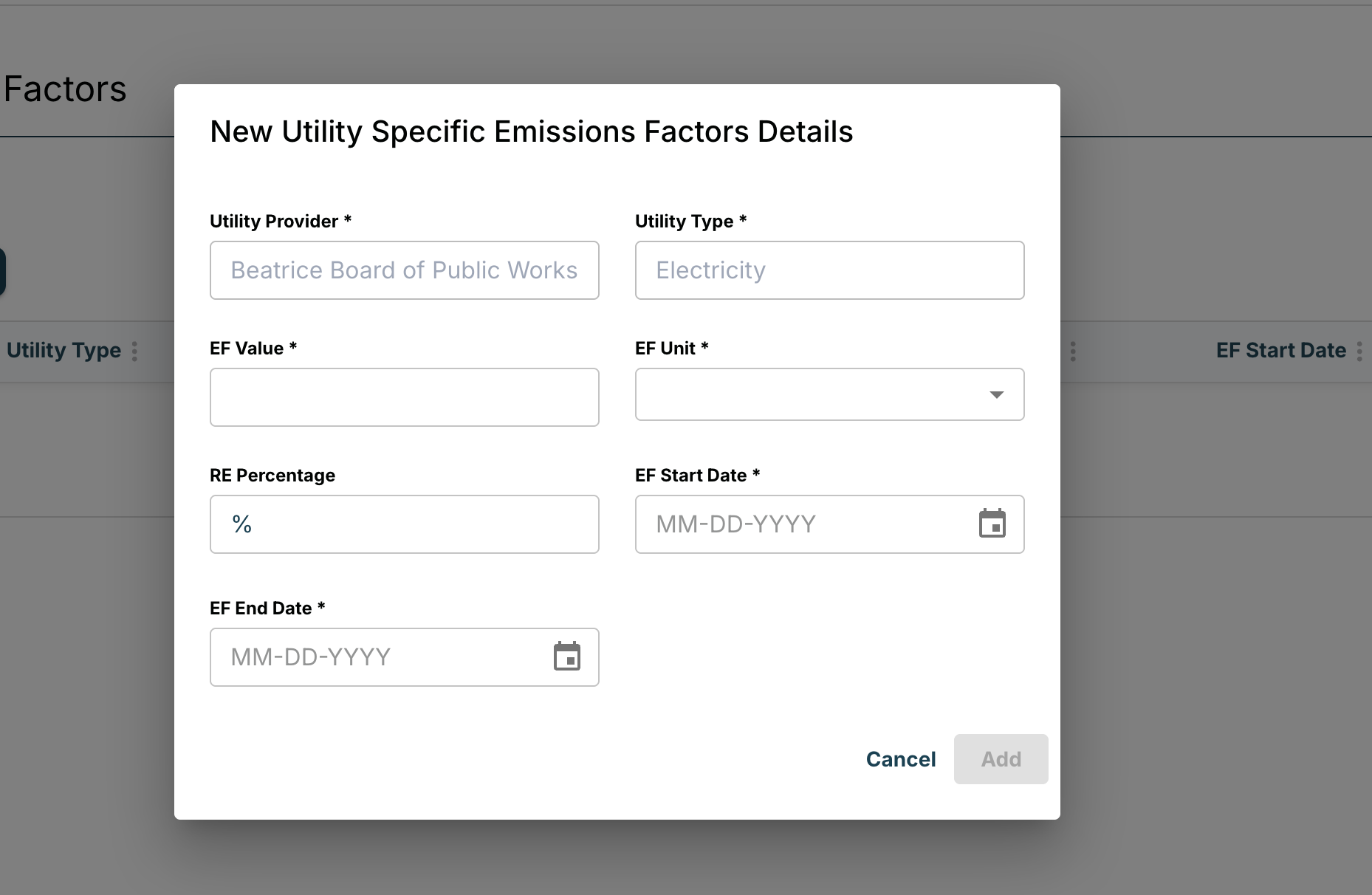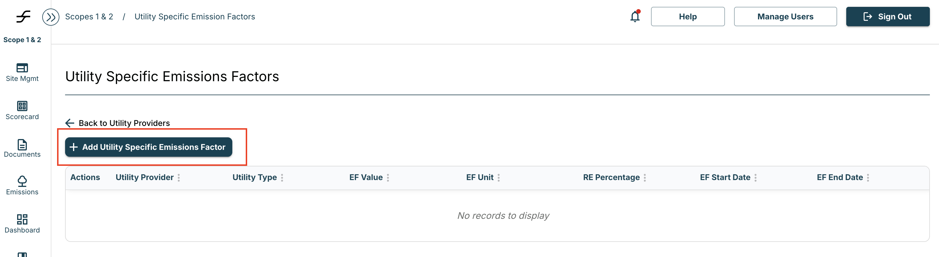 - This will open a new page — select “Add Utility-Specific Emission Factor”
