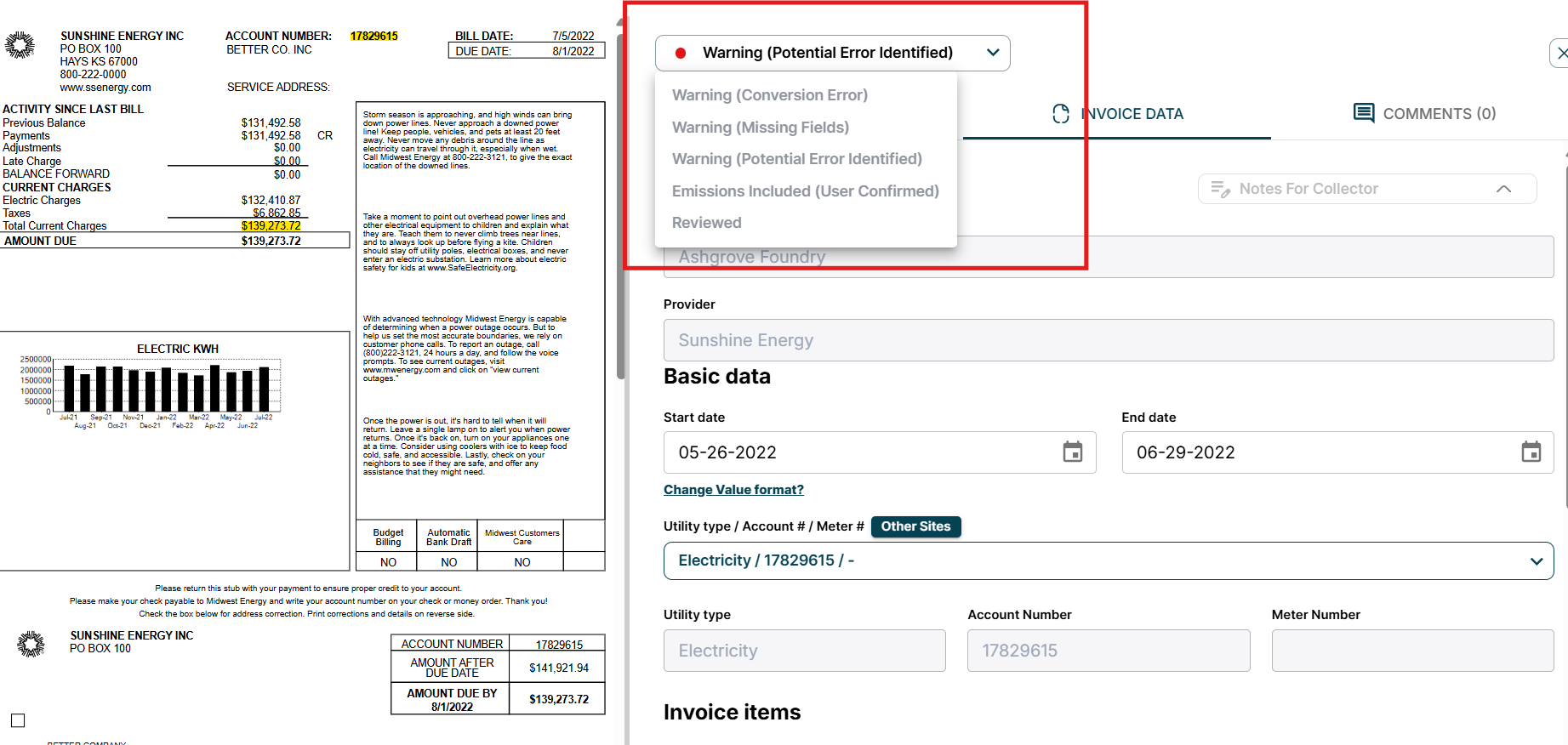 - In order to select this status, the invoice must already be set to either “Emissions Included (User Confirmed) or Emissions Included (AI Generated)